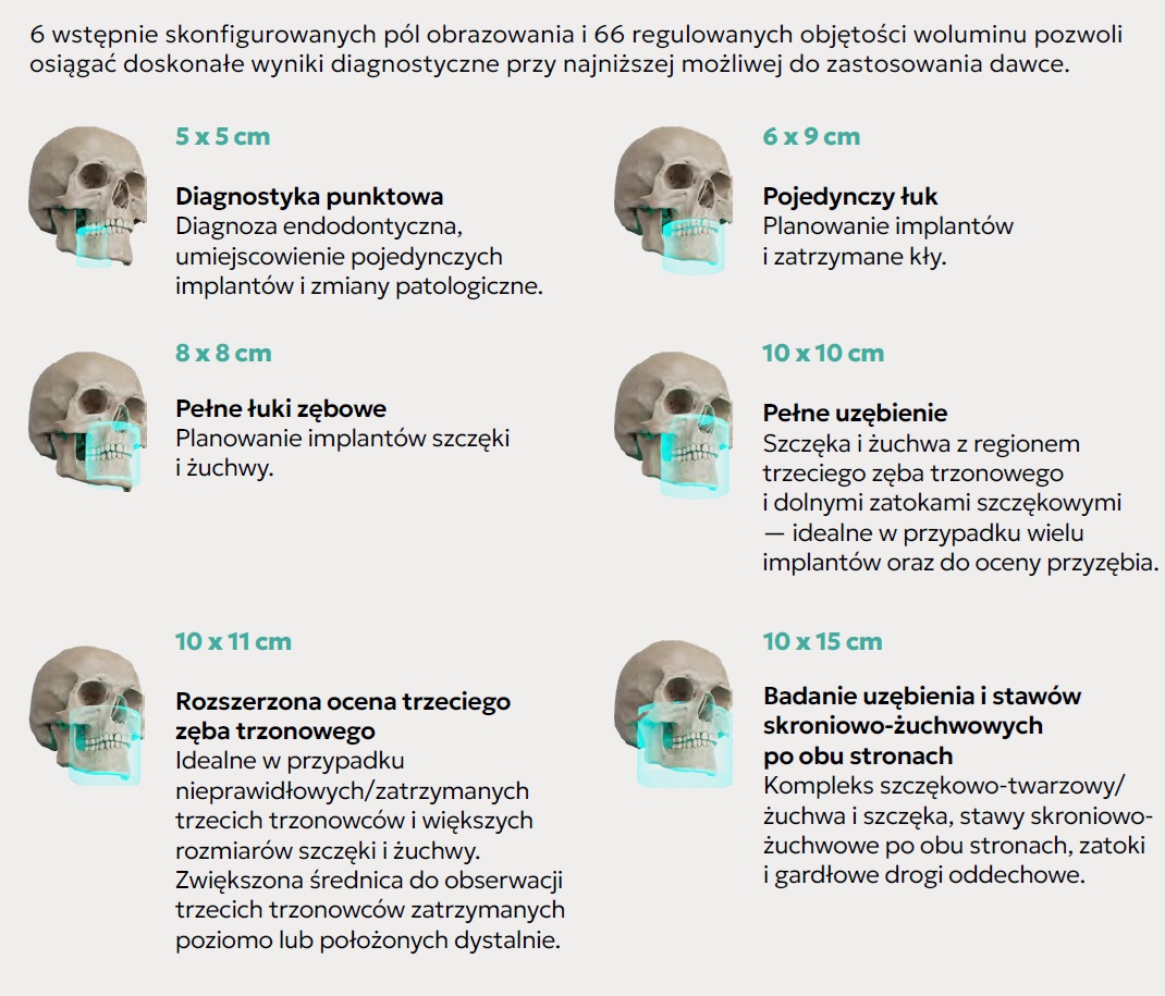 • Funkcja Magic AssistTM Automatyzuje 6 kroków procedury konfigurowania obrazowania CBCT.