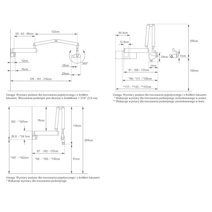 Mocowanie aparatu RTG FOCUS wymaga minimalnej powierzchni na ścianie, aparat można zamocować również na stojaku, wózku jezdnym oraz słupku unitu stomatologicznego.