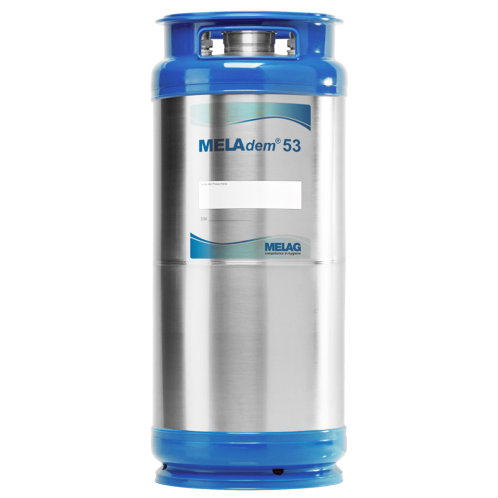 MELAdem 53 to niezrównany system demineralizacji wody do wysokiego zużycia wody. Uzdatnianie wody polega na przelewaniu jej przez wkład żywiczny zamknięty w metalowym, 20 – litrowym pojemniku. W zakresie dostawy są dwa pojemniki. Po zużyciu pierwszego odsyła się go do regeneracji i żeby zapewnić ciągłość pracy podłącza się drugi. System znajduje zastosowanie w przypadku podłączenia do kilku autoklawów i termodezynfektora, szczególnie w przypadku używania programu okulistycznego, gdzie płukanie wodą demineralizowaną jest konieczne. Demineralizator dostępny jest również w wersji kompaktowej 53C ułatwiający zabudowę w mniejszych przestrzeniach. Wydajność jednego zbiornika wynosi ok. 2.800 litrów przy średniej wartość twardości wody. Wysoka jakość wkładów żywicznych daje niski poziom przewodności wody 1 – 5 µm/cm