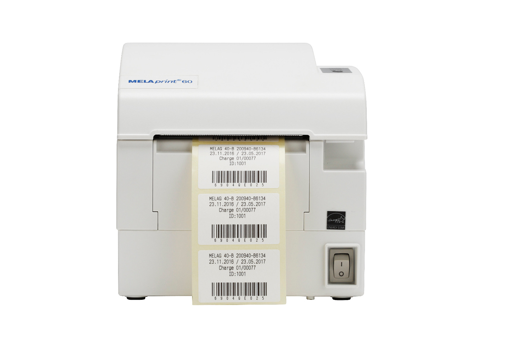 Drukarka drukuje informacje na etykietach Melag, dostarczanych w rolkach po 1000 sztuk. Jest to bardzo ekonomiczny i wydajny sposób na bezpieczne oznakowane pakietów po sterylizacji. Taki system eliminuje ryzyko uszkodzenia pakietu podczas ręcznego opisywania pakietów.