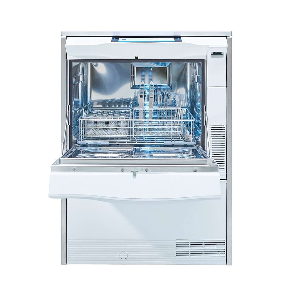Myjnia – termodezynfektor Melag MELAtherm 10 EVOLUTION wyznacza nowe standardy obsługi. Na dużym ciekłokrystalicznym wyświetlaczu można obejrzeć filmy instruktarzowe dotyczące obsługi, wymiany płynów i podstawowej konserwacji. Funkcja Aqua Boost zwiększa skuteczność mycia o 40% w stosunku do myjni MELAtherm 10. Każdy cykl zakończony jest aktywnym suszeniem co gwarantuje idealnie suche narzędzia nawet te z wgłębieniami. Zwalnianie wsadu odbywa się bezpośrednio z wyświetlacza. Aplikacja MELAconnect pozwala na kontrolę urządzenia nawet z dystansu. Do wyboru są 3 programy: uniwersalny, szybki i intensywny. Wybór jest bardzo prosty dzięki wyświetlaczowi na panelu przedni i tylko 4 przyciskom. Myjnia jest wyposażona w szafkę, w której znajdują się płyny, które są precyzyjnie dozowane na każdy cykl. MELAtherm 10 Evolution daje duże możliwości instalacyjne: pod standardowym blatem, na końcu ciągu meblowego lub na dodatkowej szafce, która podnosi wysokość urządzenia i dzięki temu obsługa jest bardzo wygodna, a dodatkowa przestrzeń jest idealna do przechowywania np. zapasowych płynów. Myjnia występuje w wersji 230V i 400V (opcja). Wyższe napięcie powoduje, że czasy trwania cyklu są jeszcze krótsze. Myjnie Melag charakteryzują się ogromnym wyborem akcesoriów i koszy, dzięki temu jest w stanie sprostać oczekiwaniom każdego specjalisty. Możliwe jest bezpośrednie podłączenie myjni do wody bieżącej dzięki wbudowanemu zmiękczaczowi wody lub jeżeli jakość wody jest niska poleca się uzdatniacz wody MELAdem 53. Zapis danych odbywa się na karcie CF.