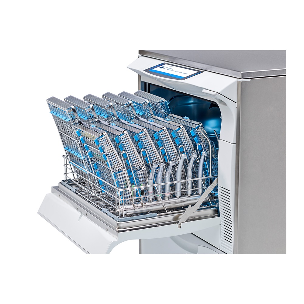 – wyposażenie standardowe: kosz bazowy z injektorem, kosz na instrumenty w pozycji pionowej, stojak na łyżki wyciskowe, nożyczki, stojak na 3 kasety