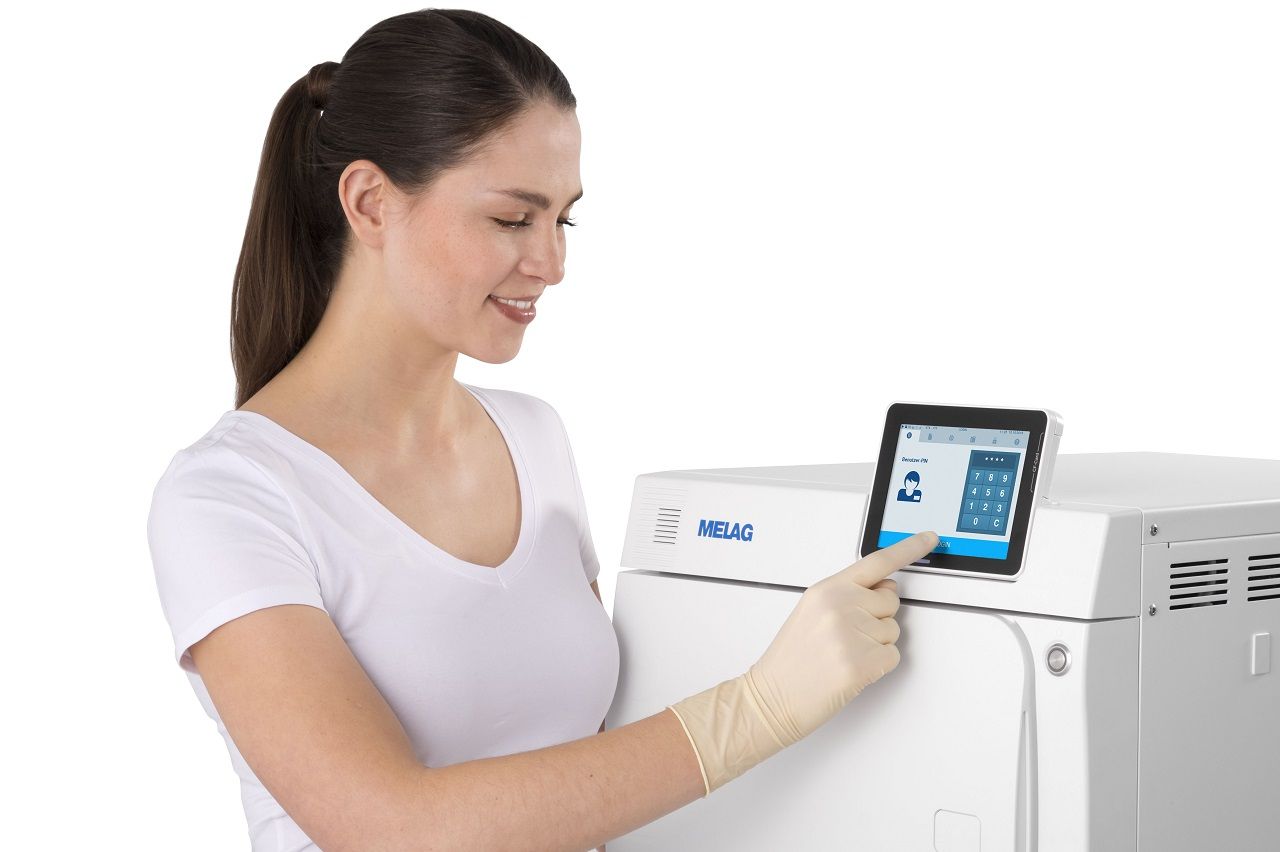 Możliwość zapisu danych i walidacji za pomocą karty CF, łącza Ethernet lub wydruku etykiet na drukarce zewnętrznej MELAprint 60. Opcjonalne oprogramowanie MELAtrace pomaga w zarządzaniu i kontroli całego procesu sterylizacji i zwalniania wsadu. Dodatkowe funkcje urządzenia ułatwiające pracę: wybór czasu rozpoczęcia pracy, pomiar przewodności wody zapobiegający użyciu wody o niskiej jakości, przycisk trybu uśpienia oszczędza energię pomiędzy cyklami pracy.