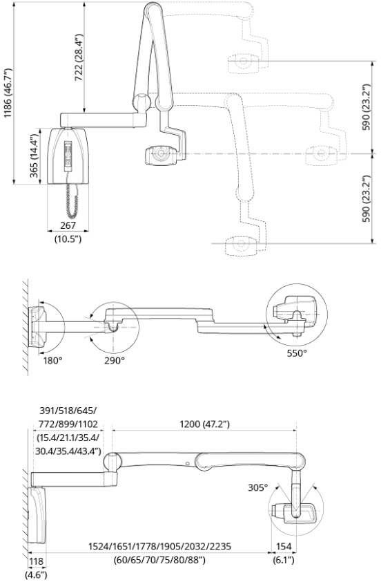 - Dostępne pięć długości ramienia [cm] – 152/165/178/191/203/223