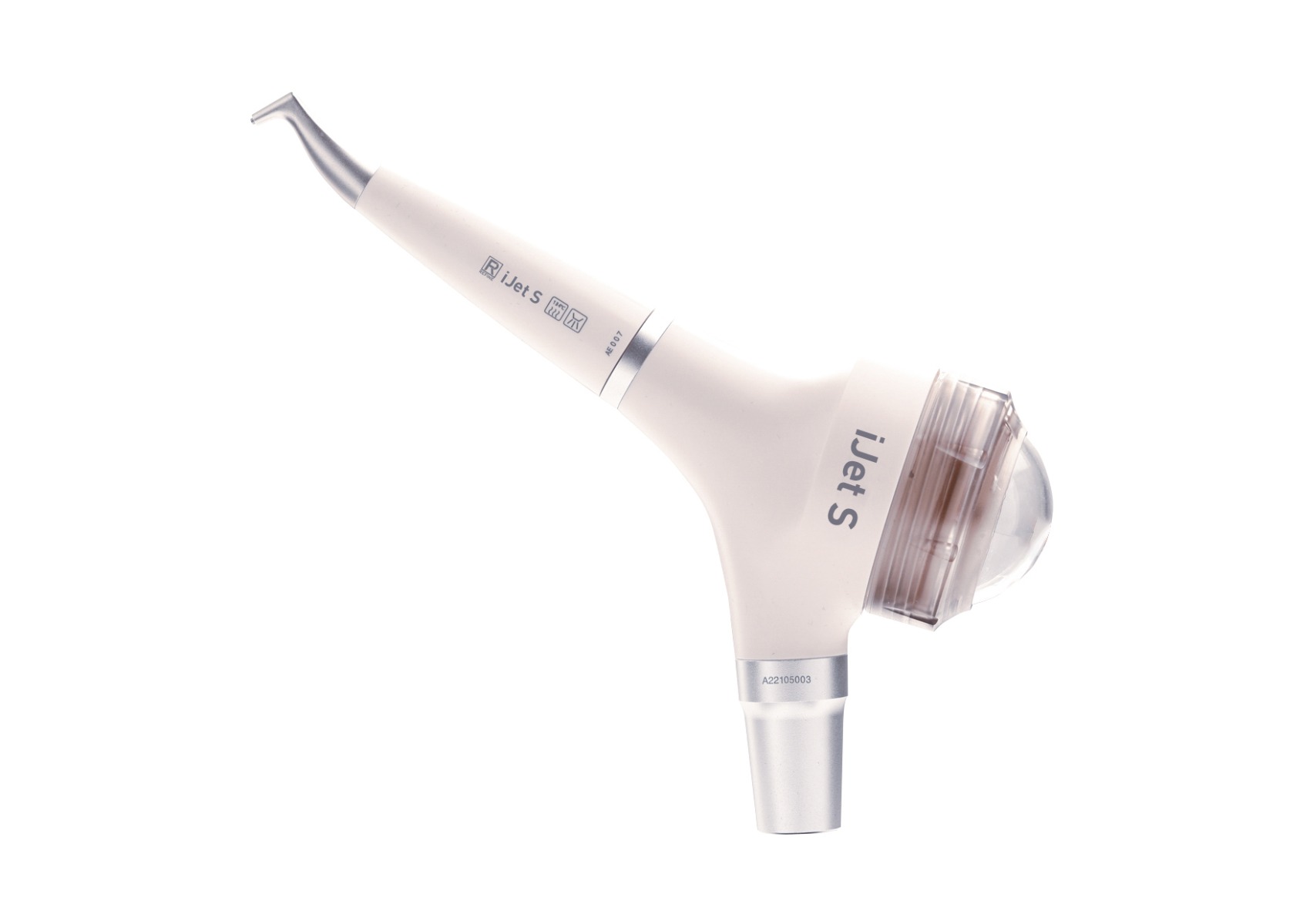 iJet firmy REFINE to najnowsza pisakarka profilaktyczna.  Piaskarka pasuje na złącze Midwest. Komora na piasek jest dużej pojemności, co ułatwia i przyśpiesza zabieg higienizacji. Łatwe czyszczenie i konserwacja. Dysza obraca się o 360°. Piaskarka posiada system zapobiegania cofaniu się piasku  i wody. Dedykowany proszek do piaskarki 65µ i 14µ.
