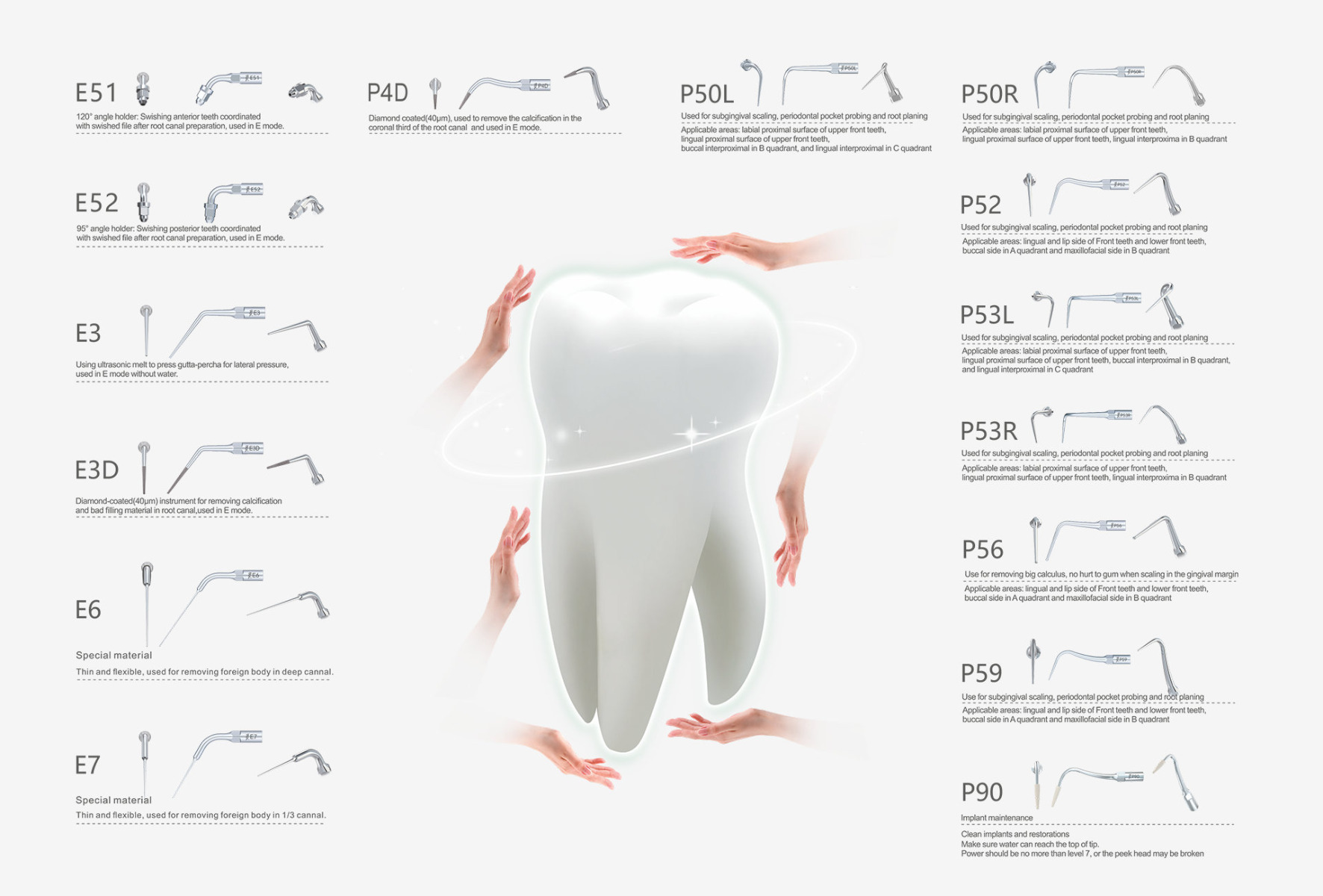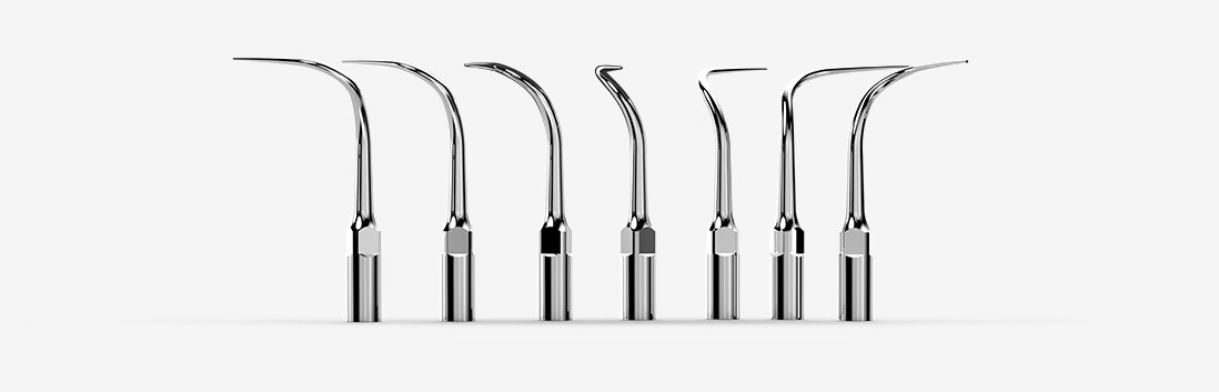 W zestawie z tytanowymi końcówkami, które nie pozostawiają zarysowań i chropowatości na powierzchni korzenia zębowego.